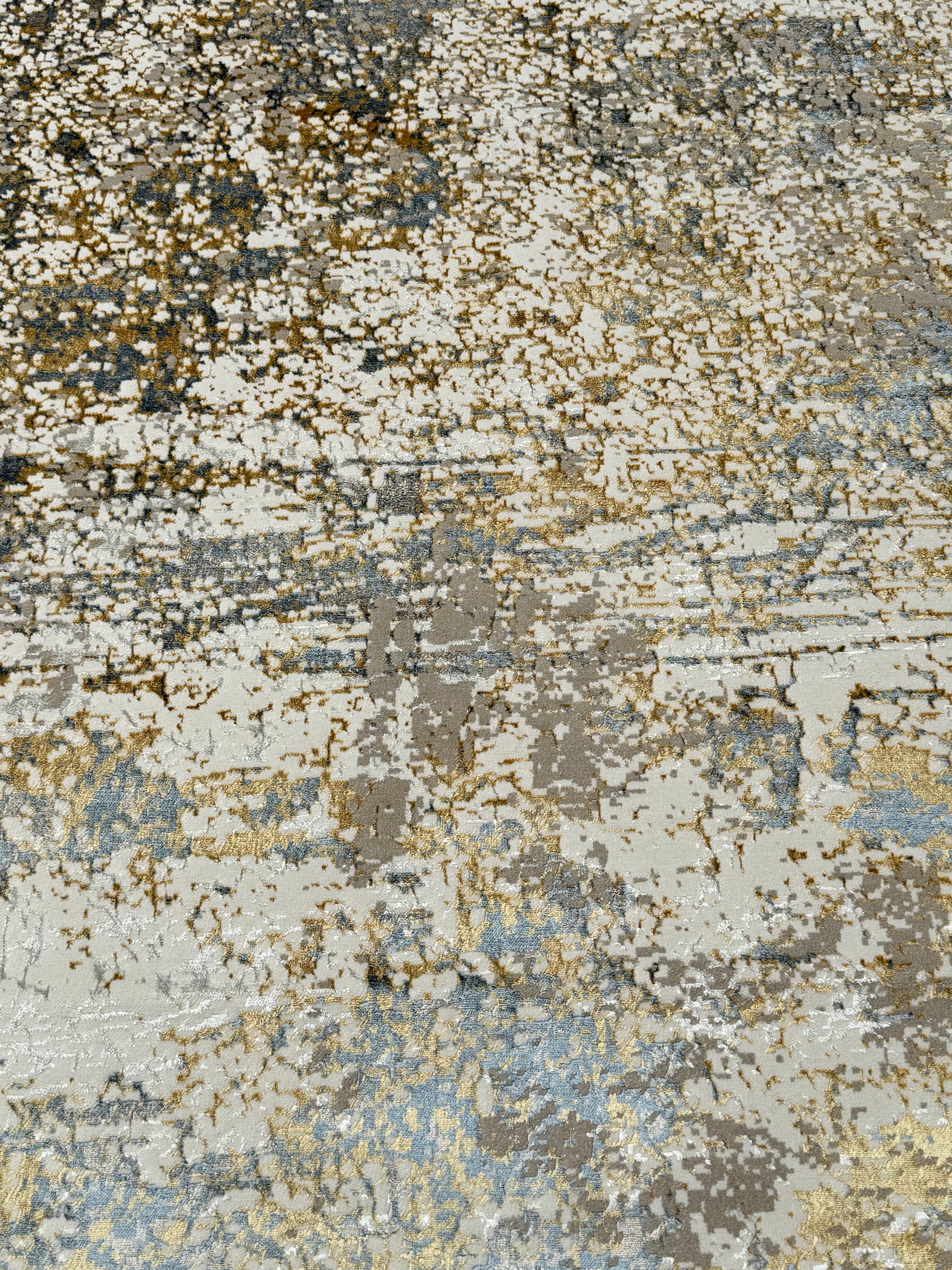 Abstract Textured Modern Rug - Beige, Cream, Grey, Gold & Light Blue | 250x350 cm (8.2x11.5 ft)