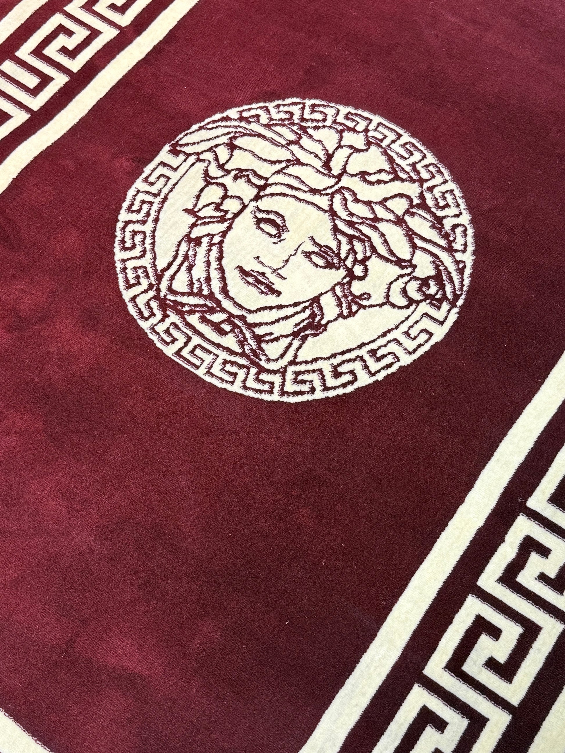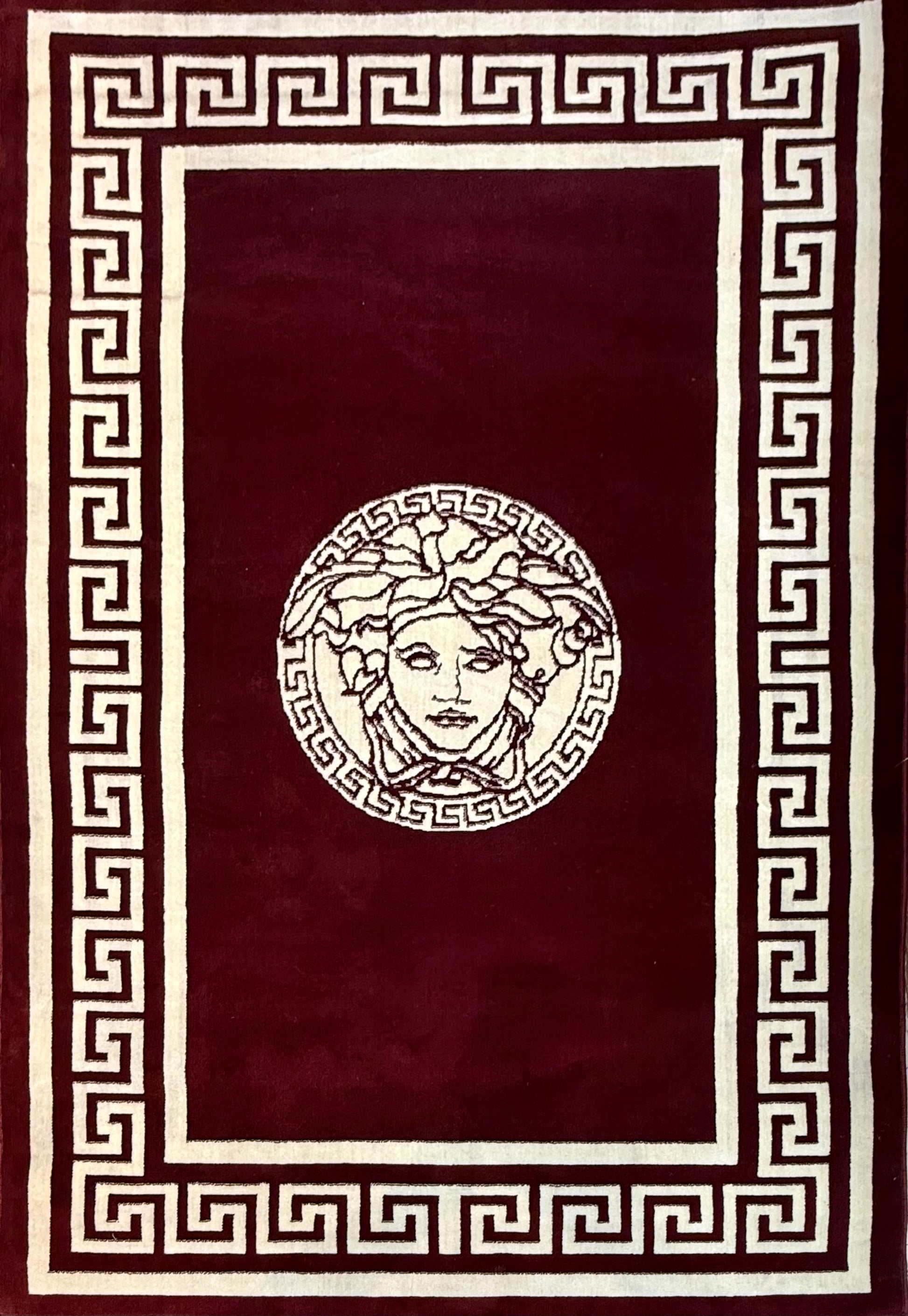 Mythic Medusa Greek Key Area Rug | Burgundy & Cream | Size (5x8) Versace aesthetic
