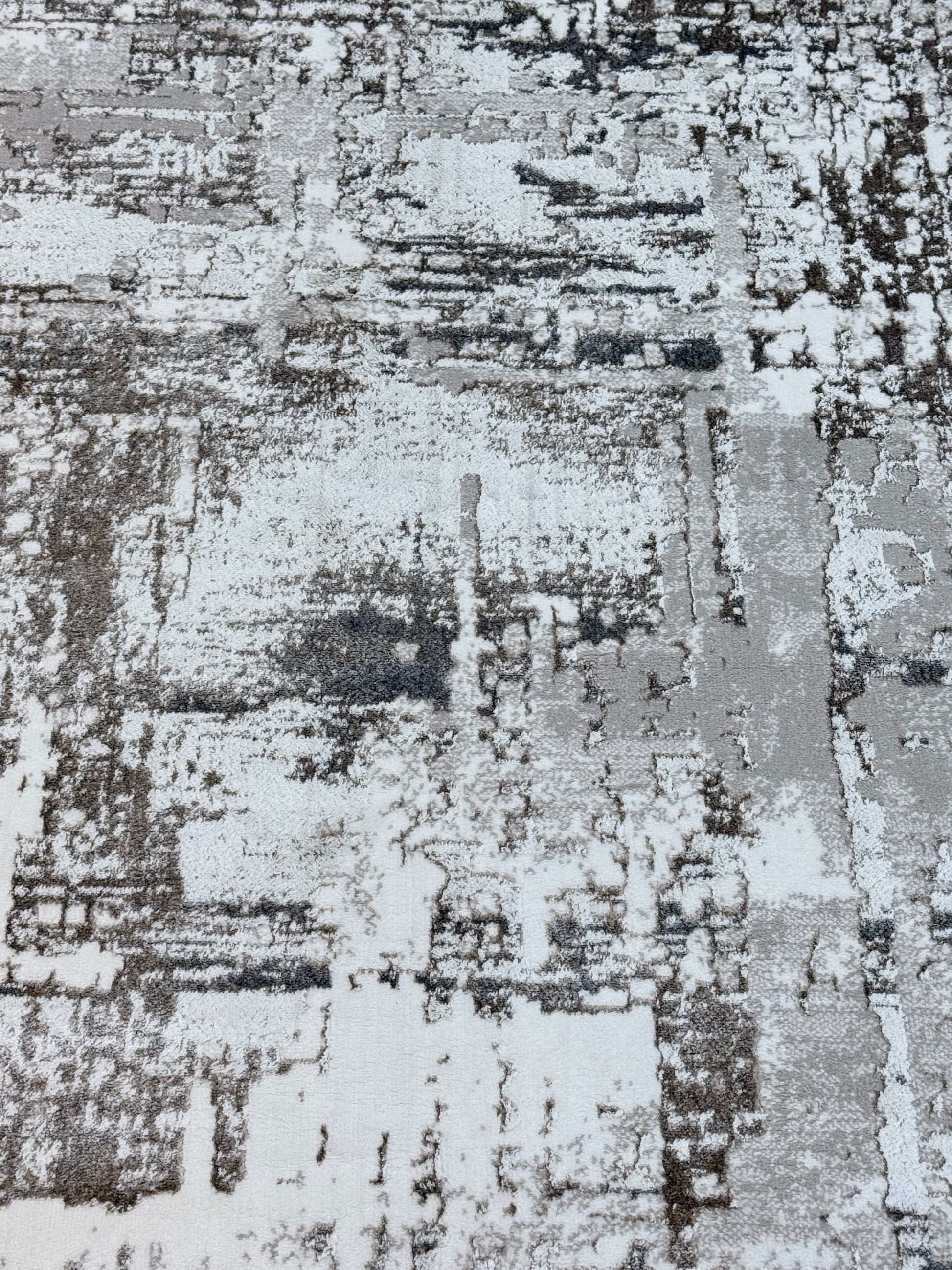 Modern Abstract Distressed Rug | Grey, Silver & Charcoal | Size 200x300 cm (6.6x9.10 ft)