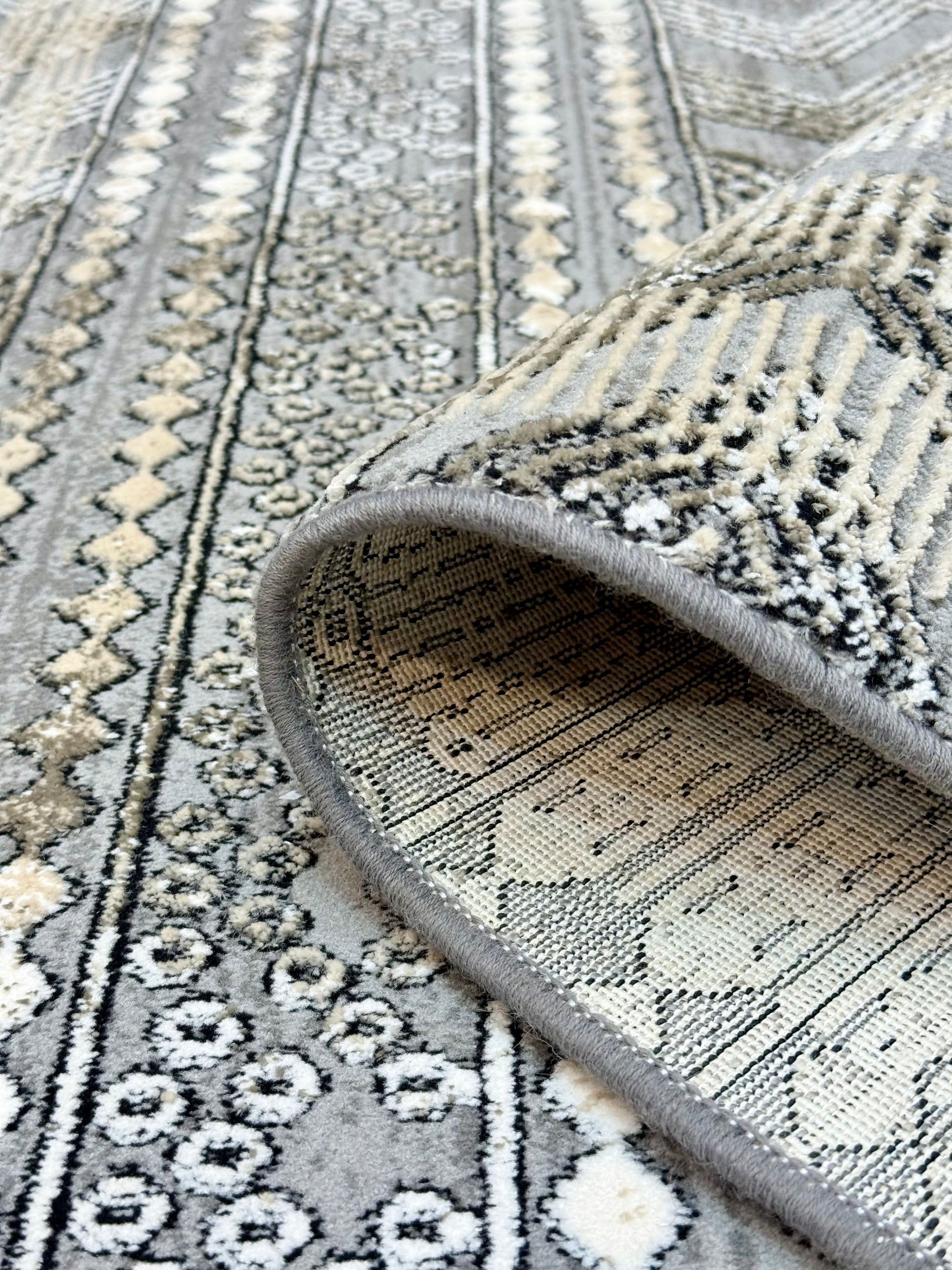 Modern Geometric Bands - LGrey & Cream - Size 150x220 cm (4.10x7.3)ft