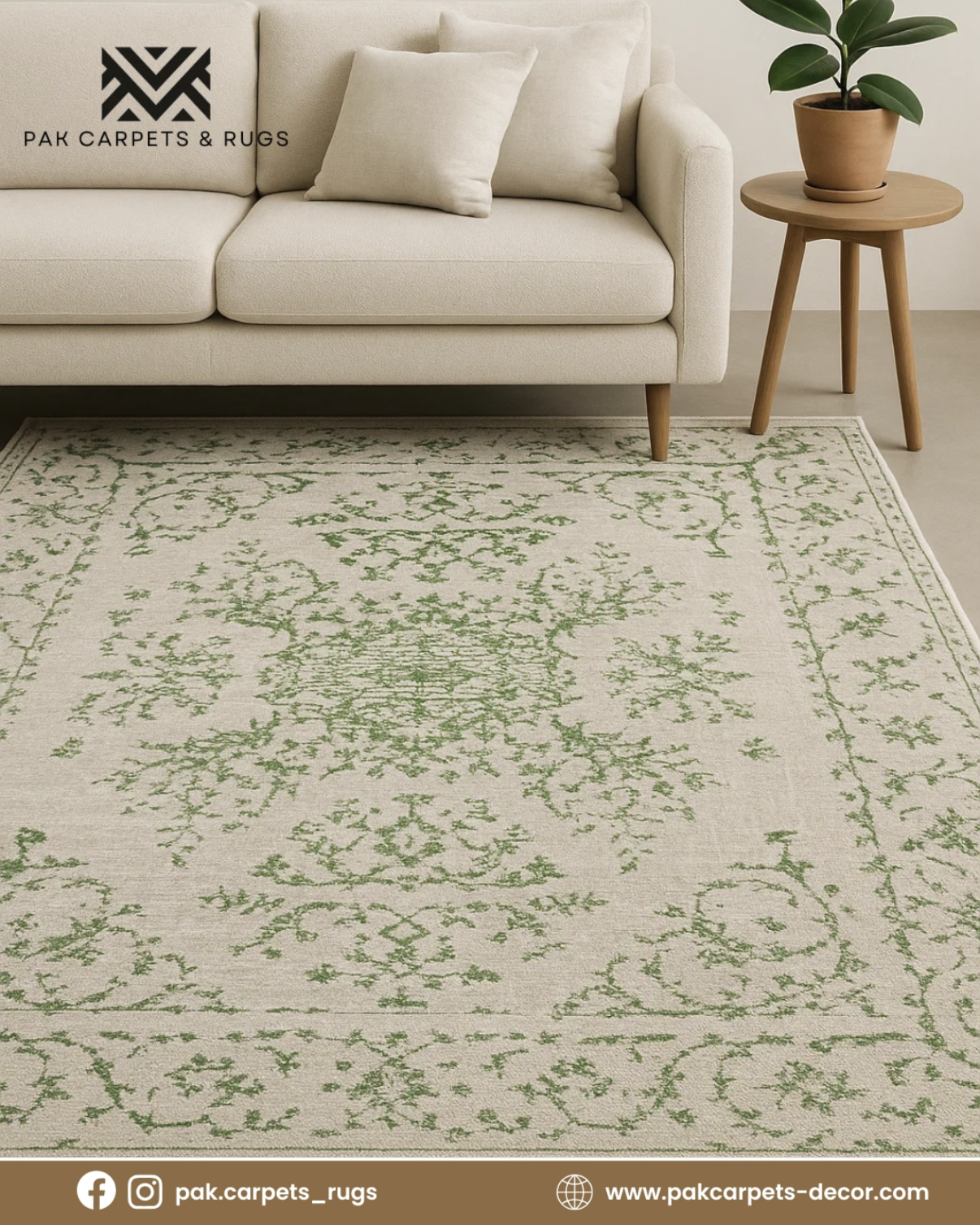 Faded Floral pattern Rug - Light Grey & Green - Size 125x180 cm (4x6)ft