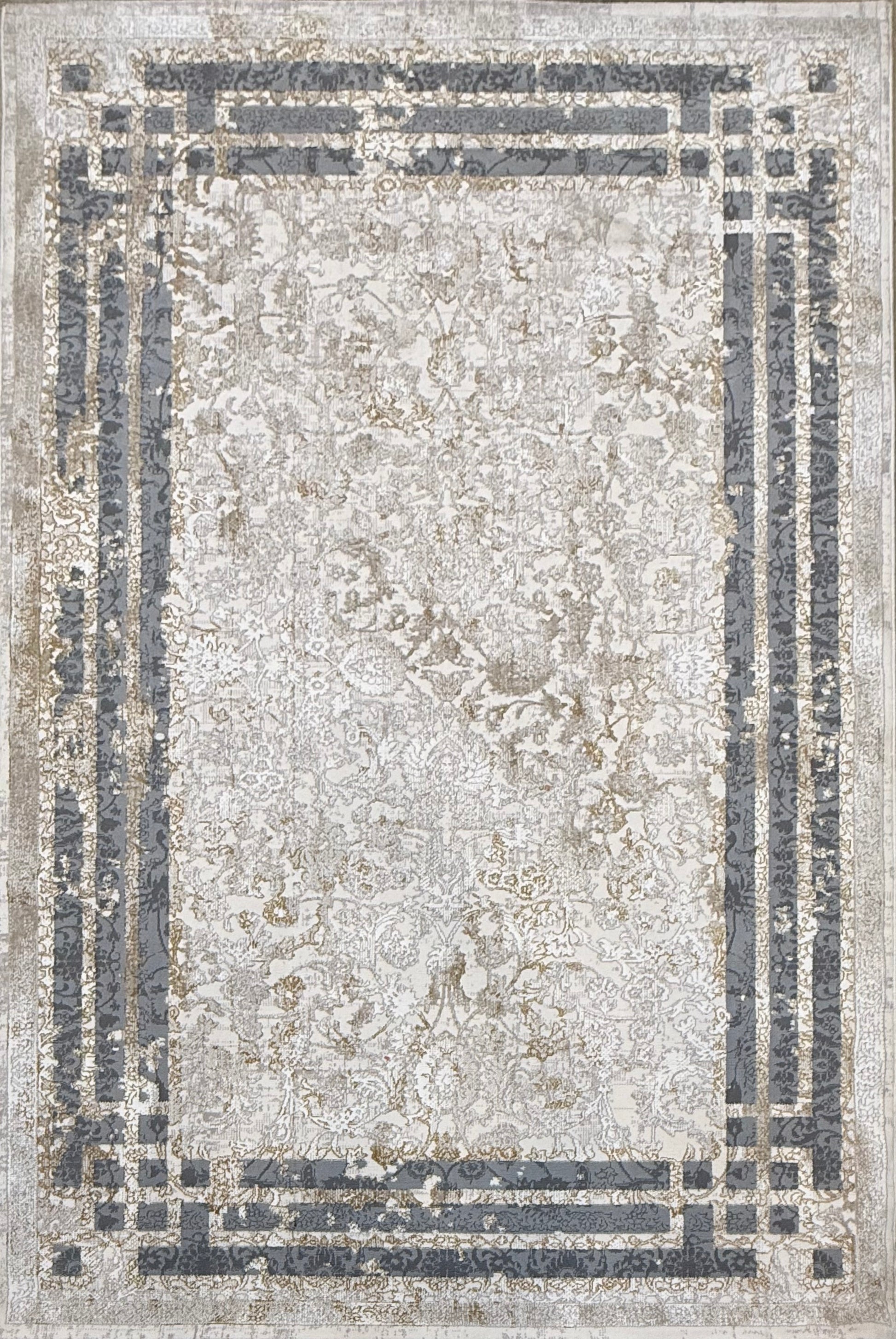 Timeworn Floral Rug with Modern Edge Cream/Off-White/Grey - Size (4.10x7.3)ft