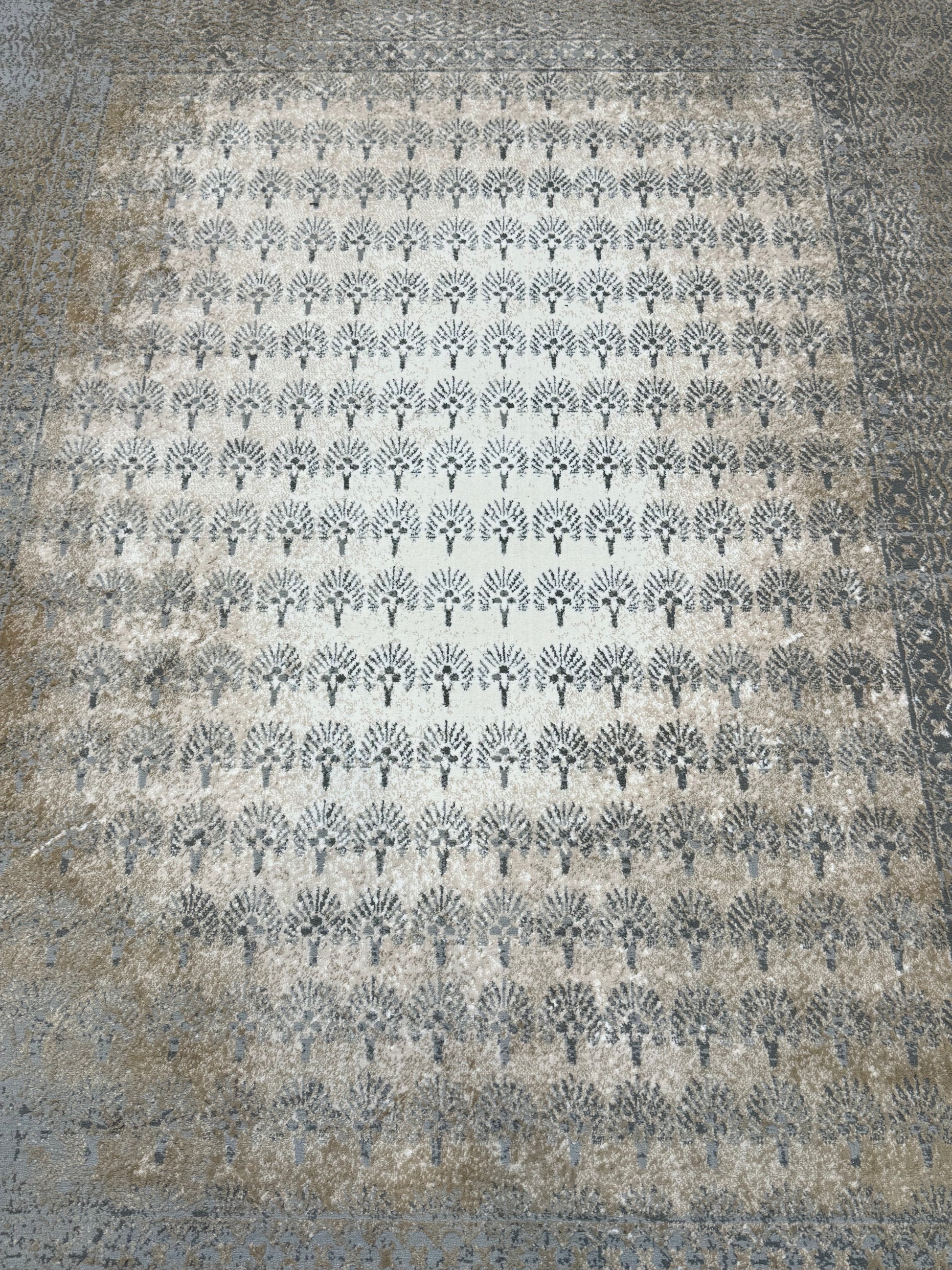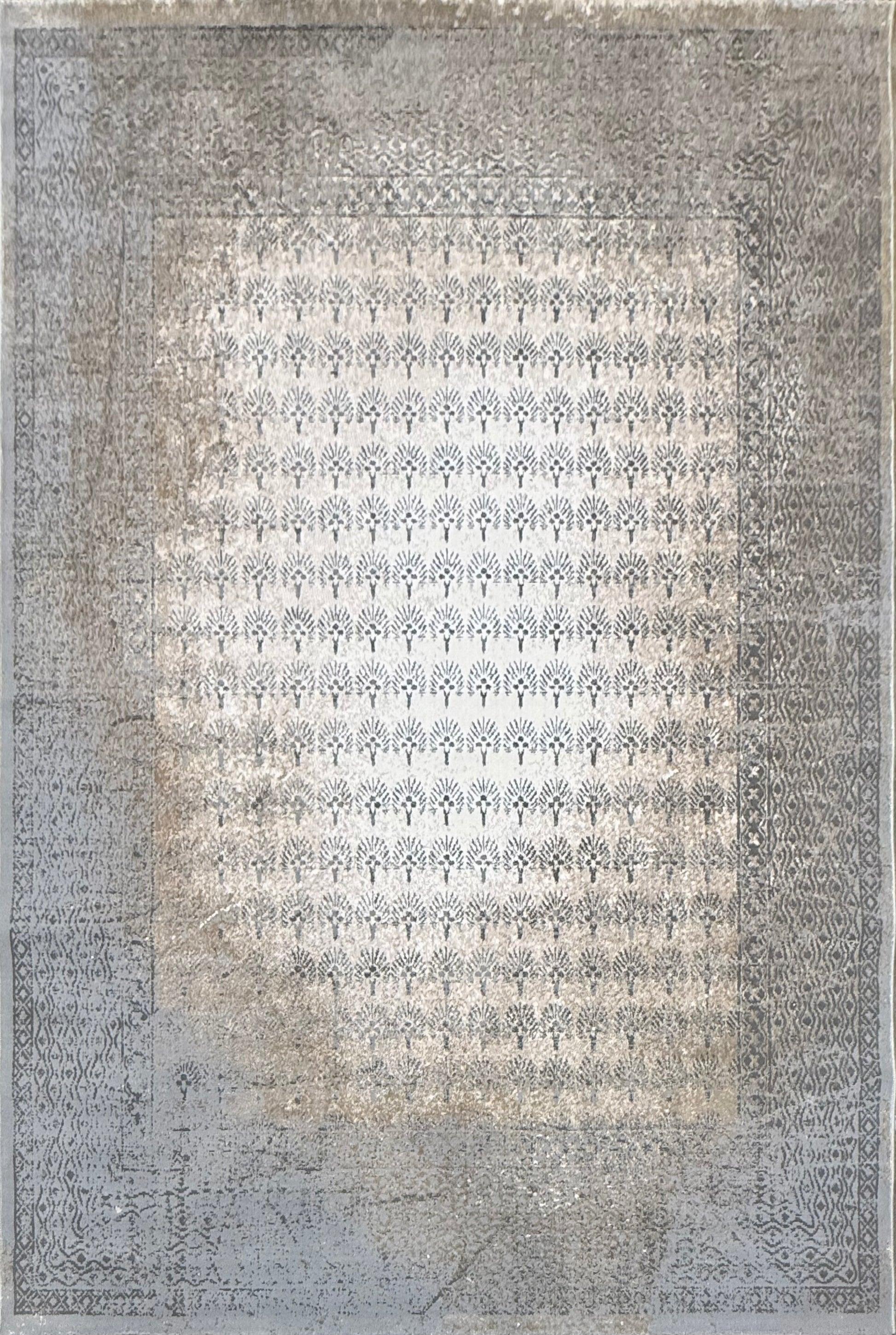 Faded Palm Leaf Rug - LGrey/ Off-White/LBeige - Size 150x220 cm (4.10x7.3)ft