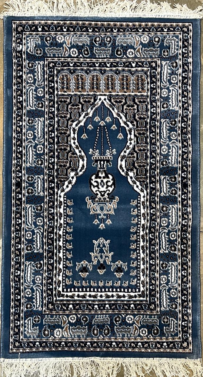 Introducing the Royal Crest Prayer Mat, sized at 2.5x4.25, a stunning prayer mat in a deep blue color adorned with intricate design patterns. This mat combines regal hues with elegant detailing, creating a sophisticated and serene space for your spiritual practice. Its plush texture offers exceptional comfort, while the refined design adds a touch of luxury and style to your prayer area. The Royal Crest Prayer Mat enhances your spiritual moments with both beauty and comfort, making it a distinguished addition to your sacred space.