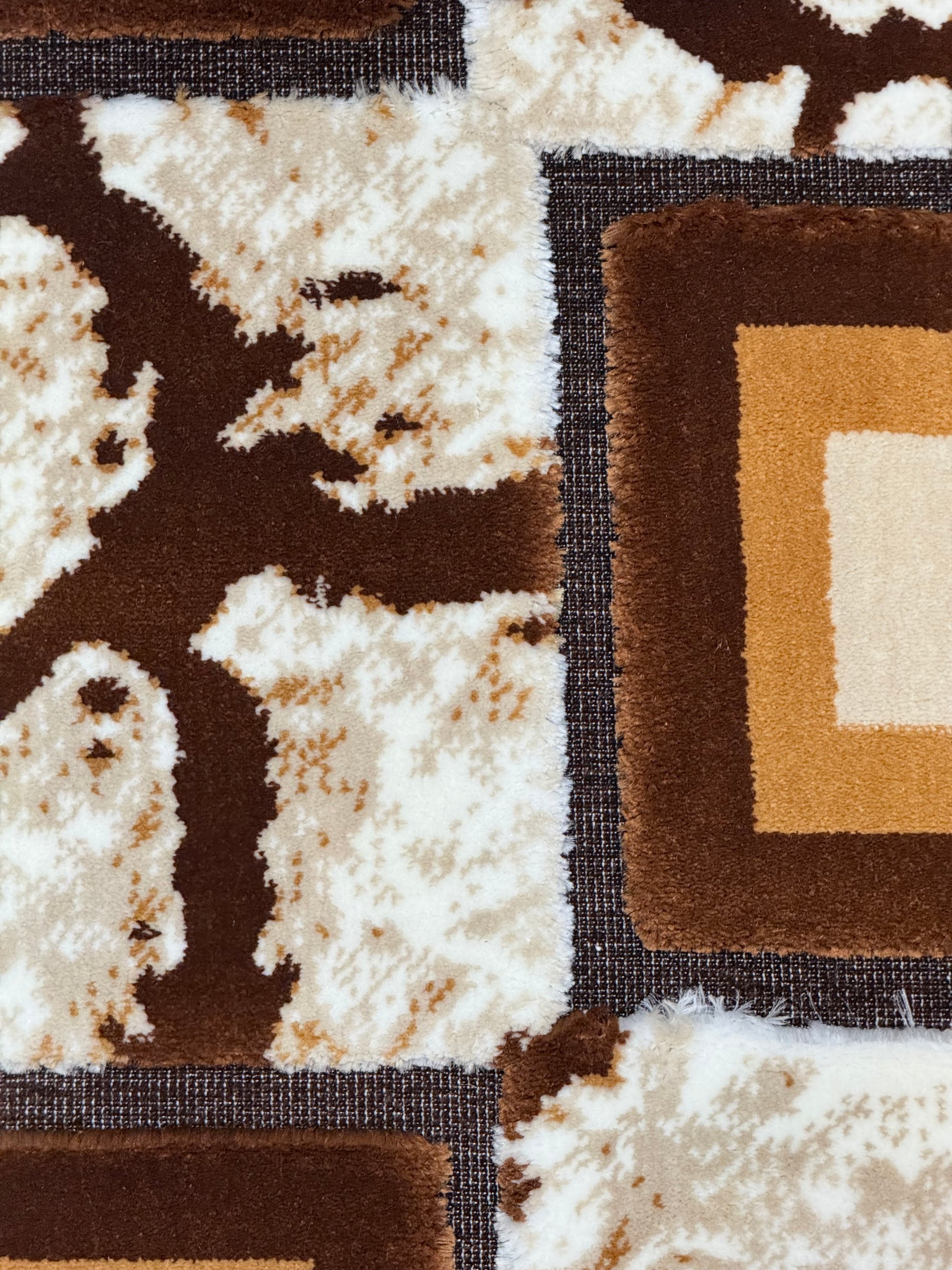 Bring the warmth of nature indoors with this Textured Stone-Inspired Velvet Rug, crafted to blend rustic charm with modern design. Featuring a bold cracked-stone pattern in rich brown, soft beige, and creamy white, the rug is accented with layered square motifs that add structure and visual depth.