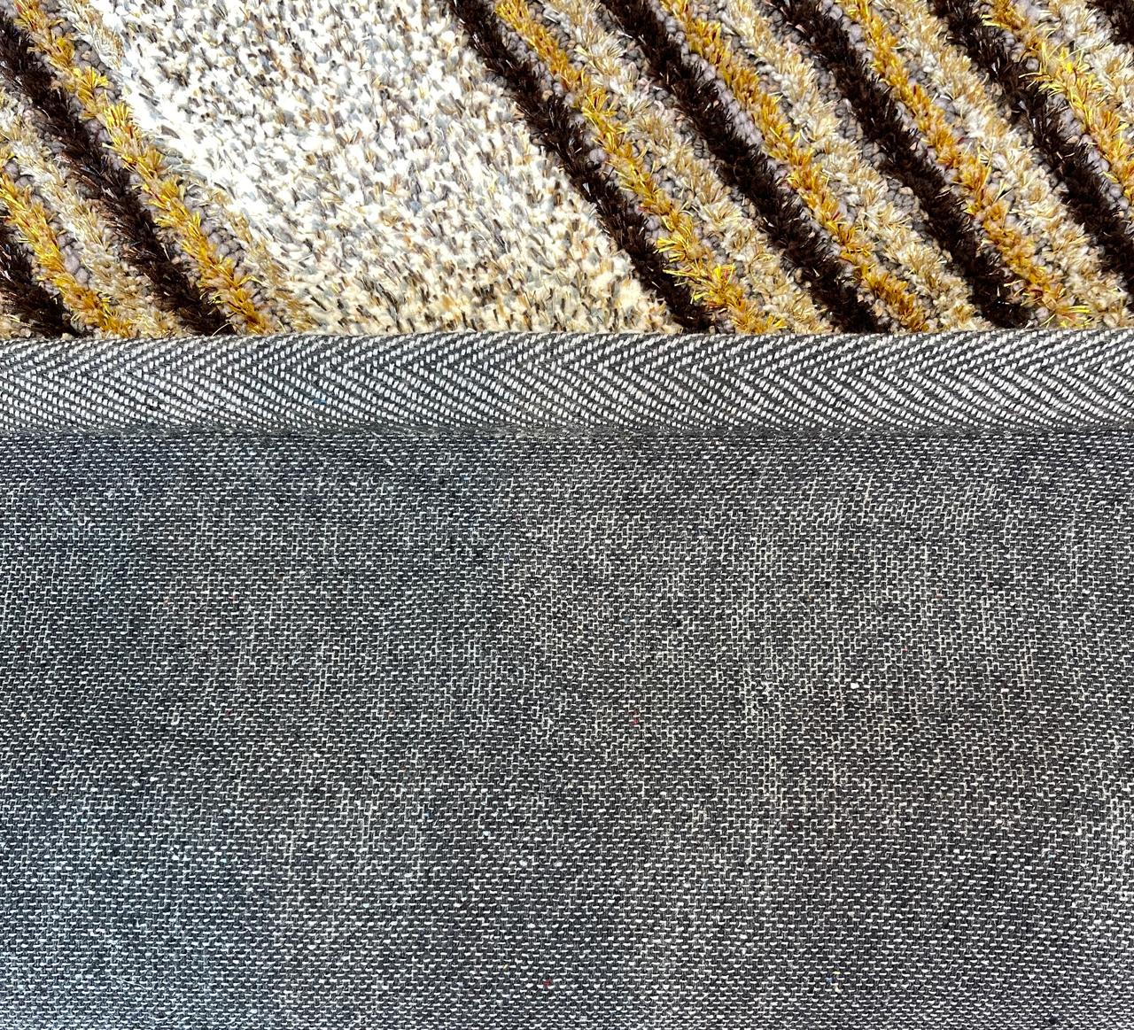 Introducing the Starlit Stripes Rug, sized at 115x170, a striking shaggy rug that elegantly blends bold black and white stripes with shimmering golden accents. This rug features a dynamic pattern of contrasting stripes that merge classic black and white with subtle touches of gold, creating a sophisticated and contemporary look.
