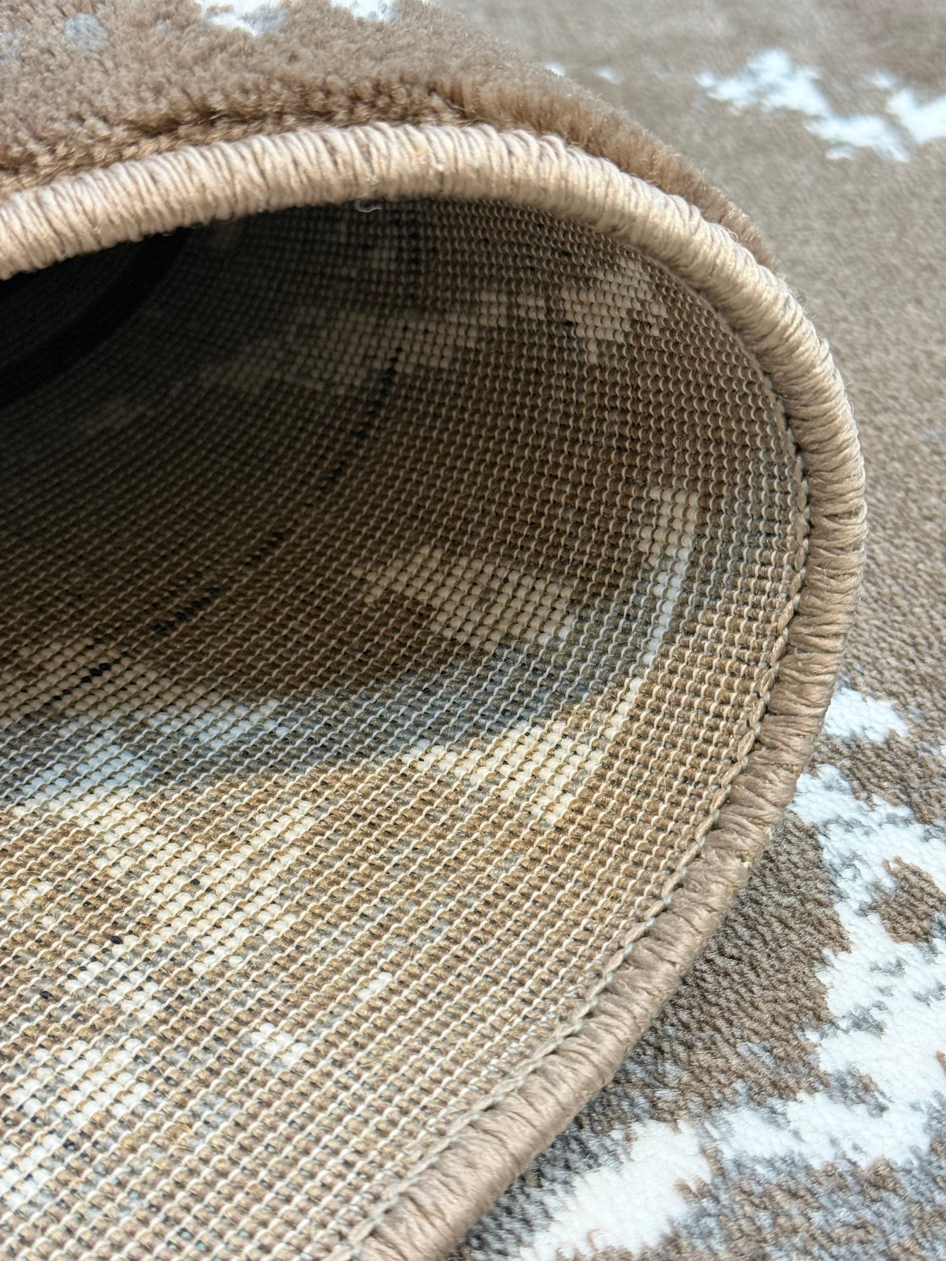 Modern Marble Frame Rug – Beige, Brown & White – Size (5x7.3) ft