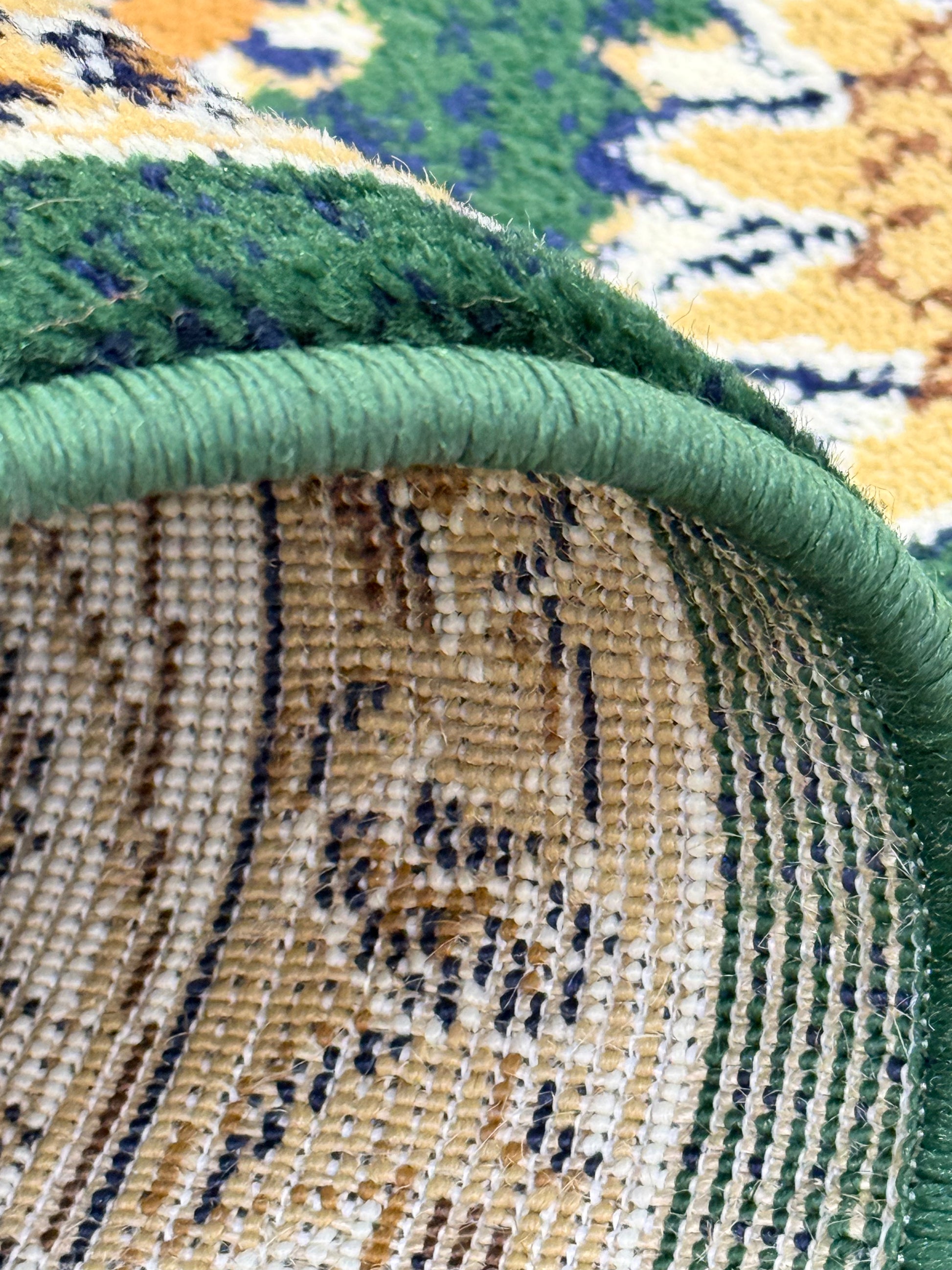 Bring timeless elegance to your home with this Classic Persian Style Green Floral Rug, featuring intricate floral motifs on a deep green background framed by a detailed cream and gold border. Crafted with precision, this rug adds a touch of luxury and warmth to any living space.